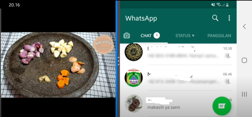 Ketuk Tombol Recent Apps (kiri bawah) – Klik Ikon 2 Kotak (layar Split). Aplikasi akan terbuka dalam bentuk 2 bagian layar.