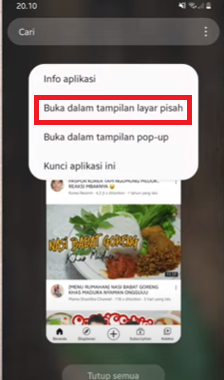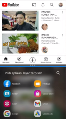 Pilih aplikasi yang akan ditampilkan pada 2 layar, disini akan dipilih aplikasi yang pertama yaitu Youtube