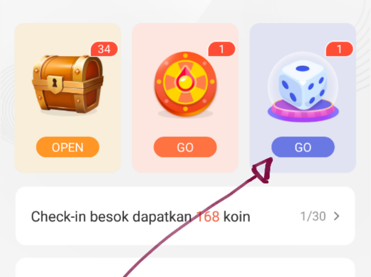 5. Ambil koin dan menuju ke kotak rewards