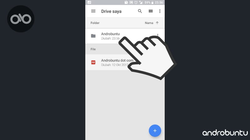 1. Pertama buka aplikasi Google Drive di HP Android kamu. Kemudian klik tombol plus yang ada di pojok kanan bawah.