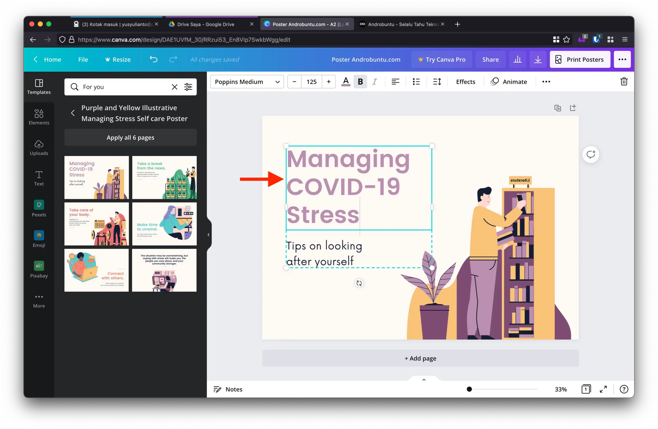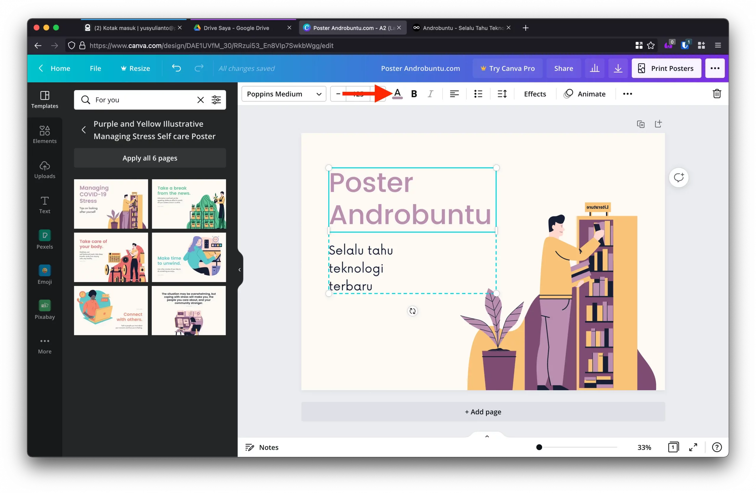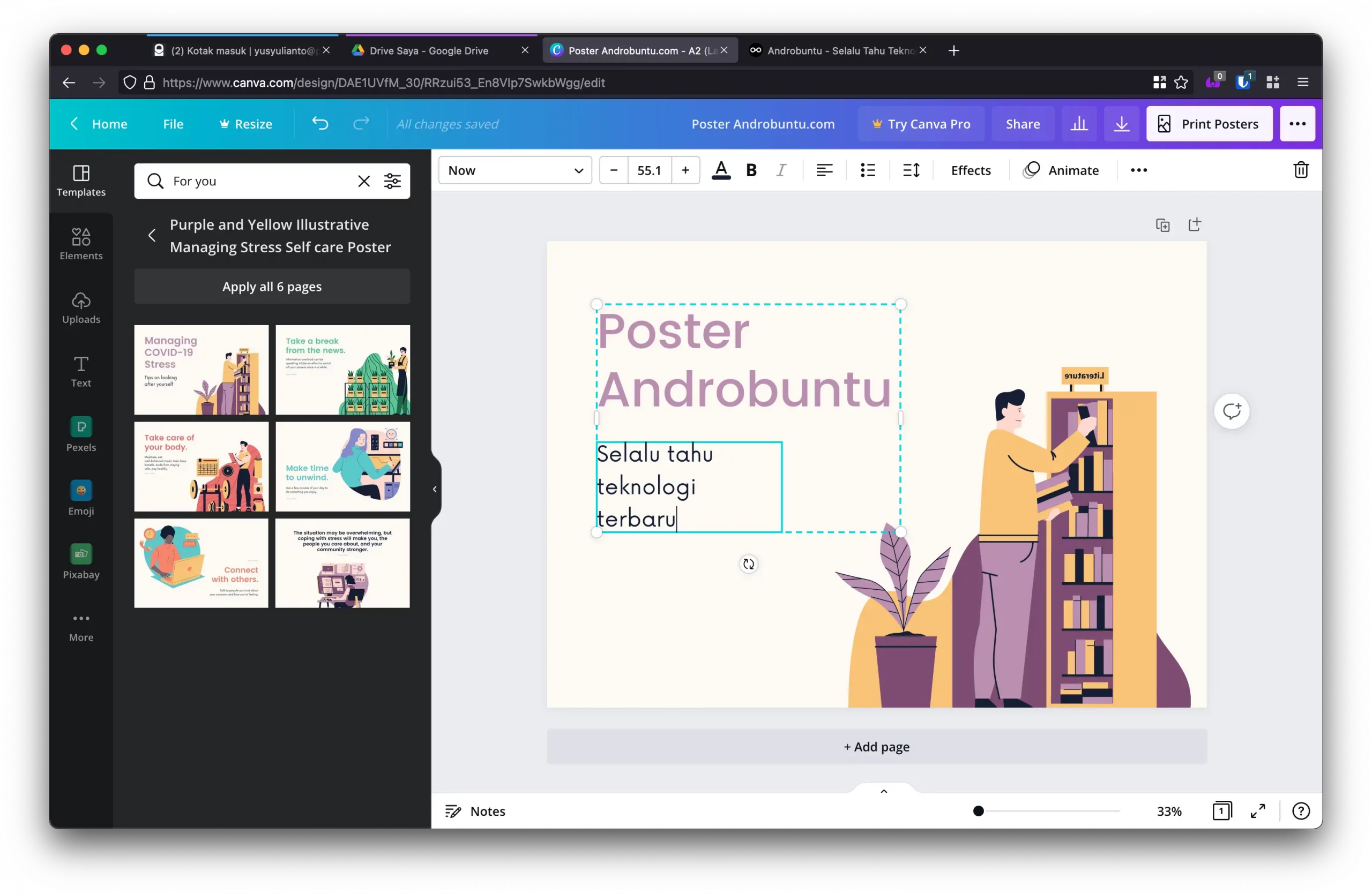Template yang dipilih kini akan diaplikasikan pada desain yang kita buat. Kita dapat mengubah setiap elemen yang ada pada template tersebut sesuai kemauan kita.