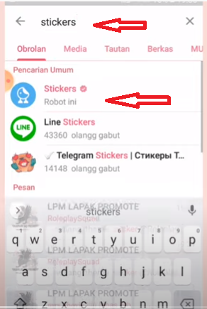 Masuk ke akun telegram, klik pencarian dan tulis “sticker”