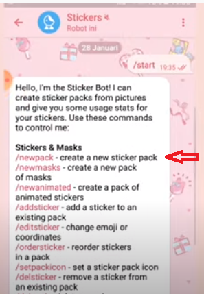 - /newpack – Membuat set stiker baru