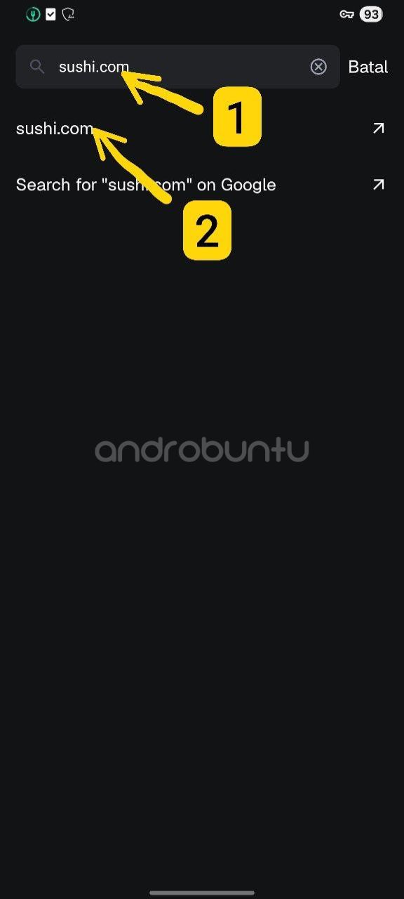 Pada kolom pencarian, ketikkan alamat berikut ini: https://sushi.com. Pastikan untuk benar-benar mengunjungi alamat tersebut, jangan sampai salah ketik.