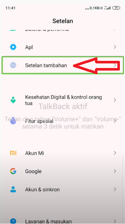 - Ketuk 1x pada Setelan Tambahan, tunggu pembacaan. Setelah itu ketuk 2x Setelan Bonus( ketuk 1 kali buat Talkback membaca, setelah itu baru 2 kali buat berikutnya)