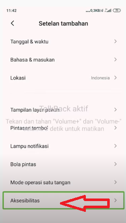 - Klik 2 kali pada Aksesibilitas buat mematikan Talkback Xiaomi lewat Toggle