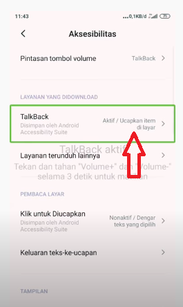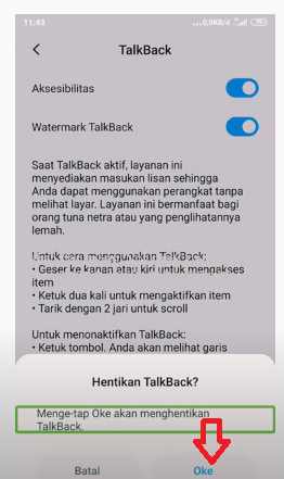 - Berikutnya Talkback akan nonaktif
