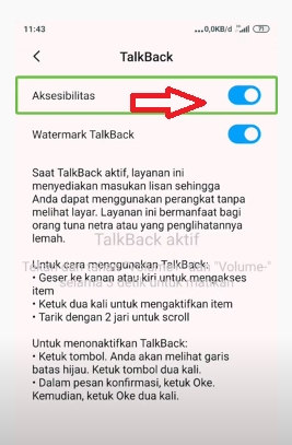- Talkback akan nonaktif
